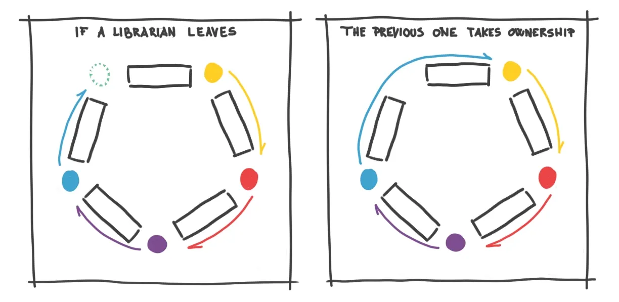This solves the issue of speed and scaling, but what about organizing the books? How do librarians know which books are assigned to them?